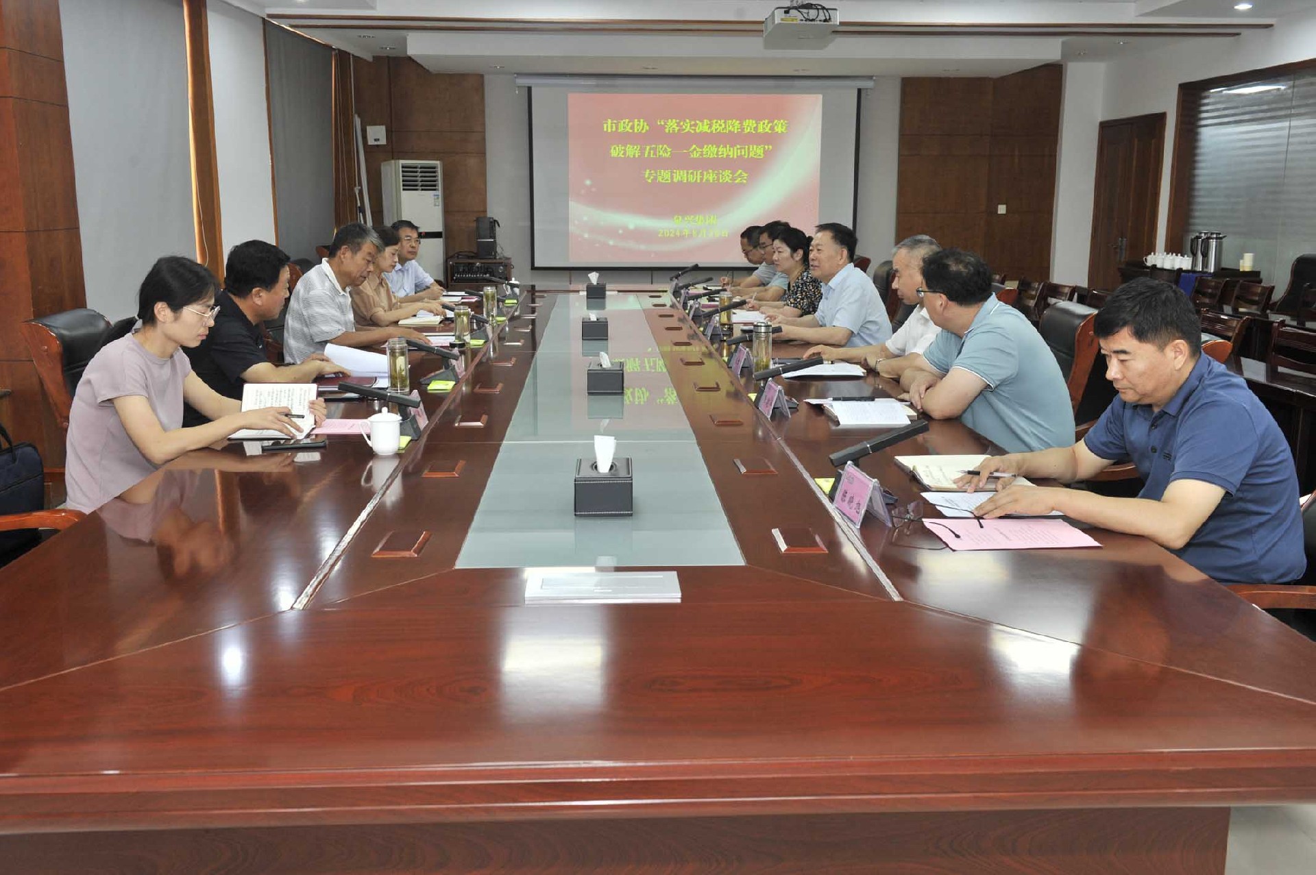 8月20日,市政协常委、经济委主任郑仰昕,市政协常委、市住房公积金管理中心主任于晨等一行5人来KY.COM开元体育(中国)科技公司,就“落实减税降费政策,破解五险一金缴纳问题”开展专题调研。KY.COM开元体育(中国)科技公司党委副书记、总经理李守广,党委委员、副总经理王君良;绿能集团党委委员、副总经理,KY.COM开元体育(中国)科技公司副总会计师、财务会计处处长张娜等参加调研活动。