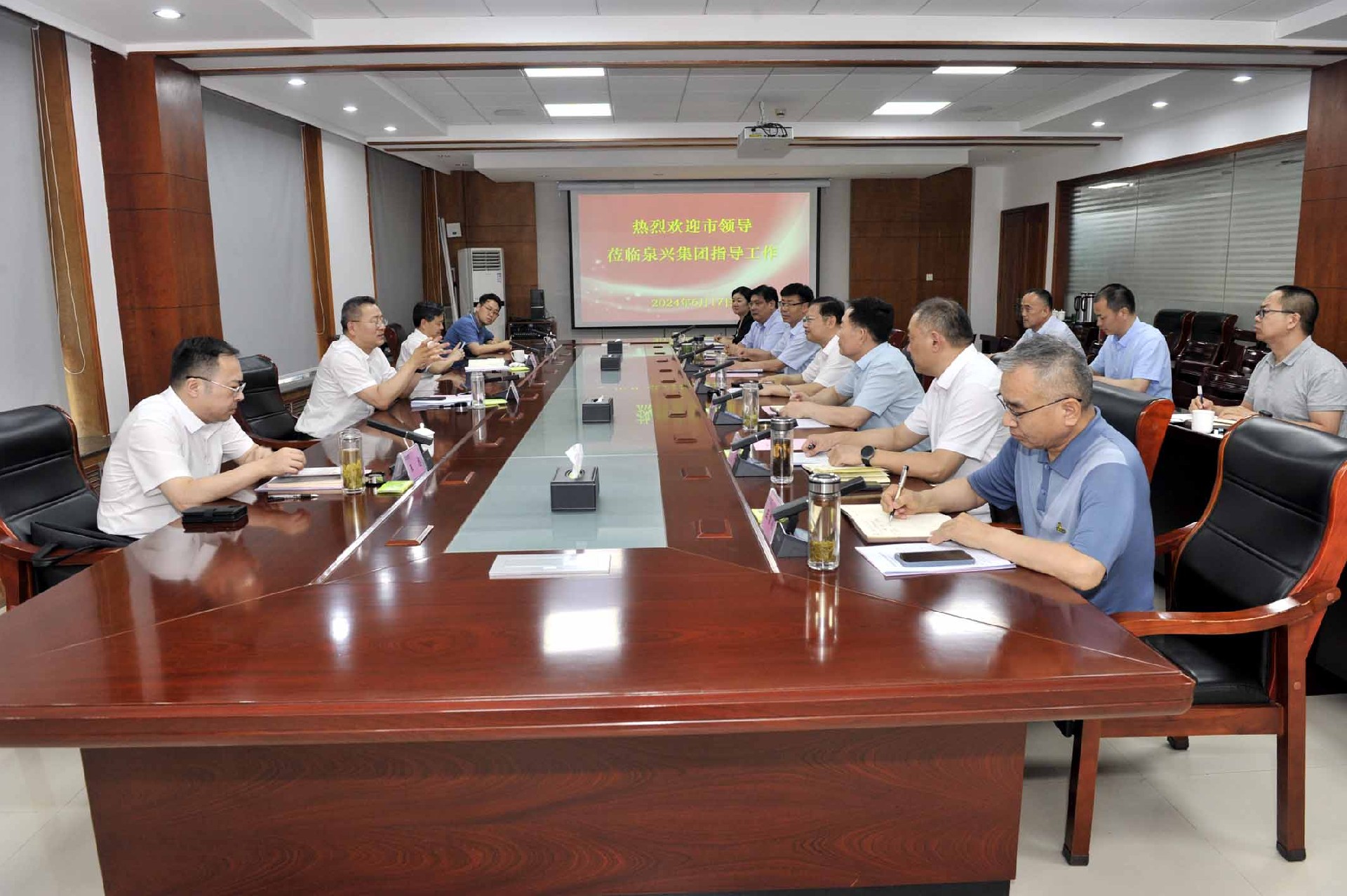 6月14日,KY.COM开元体育(中国)科技公司绿能集团新能源产业发展座谈会在集团总部五楼会议室召开,集团党委书记、董事长张宗辉出席会议并讲话;集团党委副书记、总经理李守广主持会议。集团党委委员、副总经理高博,绿能集团党委委员、副总经理张娜;绿能集团区级合作国企晟玺集团、华邦集团、中汇集团、宏达公司主要负责人及分管负责人等参加会议