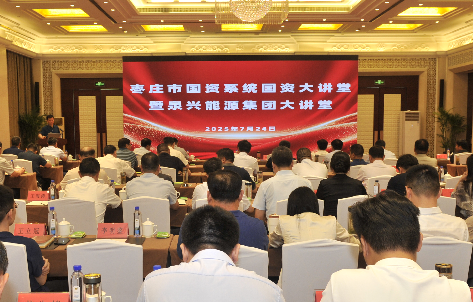 7月24日,由市国资委主办,泉兴能源集团承办的枣庄市“国资大讲堂”暨“泉兴能源集团大讲堂”在开元凤鸣山庄开讲。会议由市国资委党委委员、副主任单德忠主持,市直有关部门领导、区(市)国资监管机构负责人,各市属企业主要负责人、分管负责人,市属企业专、兼职外部董事,泉兴能源集团、绿能集团、高铁投公司班子成员,市
